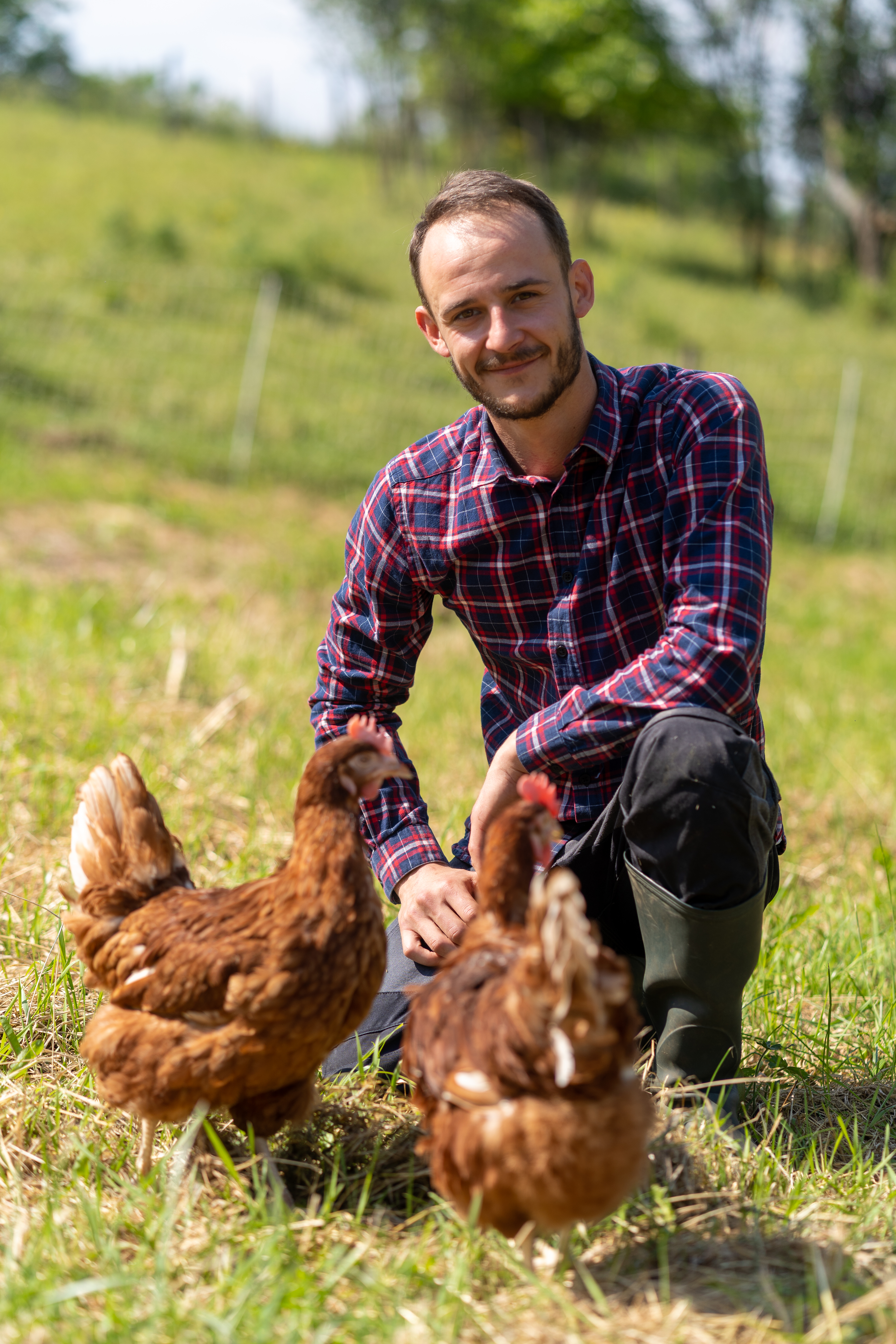 Antoine vous propose ses œufs extra frais, N°:1 = plein air, à chaque ouverture.